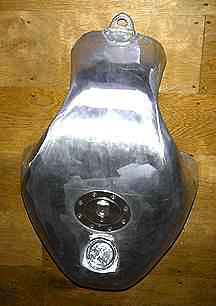 1400 VN Suzuki Intruder 16 Ltr. tank fits all original fittings, uses original fuel tap and choke switch. Lock stops may be necessary on the steering. Also has hidden breather. This tank is a prototype and is scurfed finished ready for etching primer and paint. Available with 400, 300 or 200 series aircraft filler cap or others to order: £550