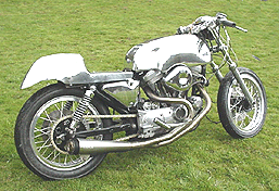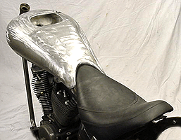 On this Silver Harley you can see one of our custom made flat track style tank and seat units.