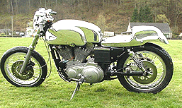 Chris Hunts bike from Edinburgh. This ia a manx style tank with a new style beak seat. To do jobs like this we need the bike at our workshop.